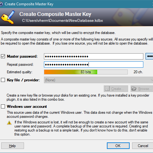 Sélection et paramétrage du logiciel KeePass, garantissant un stockage sécurisé et chiffré des mots de passe.