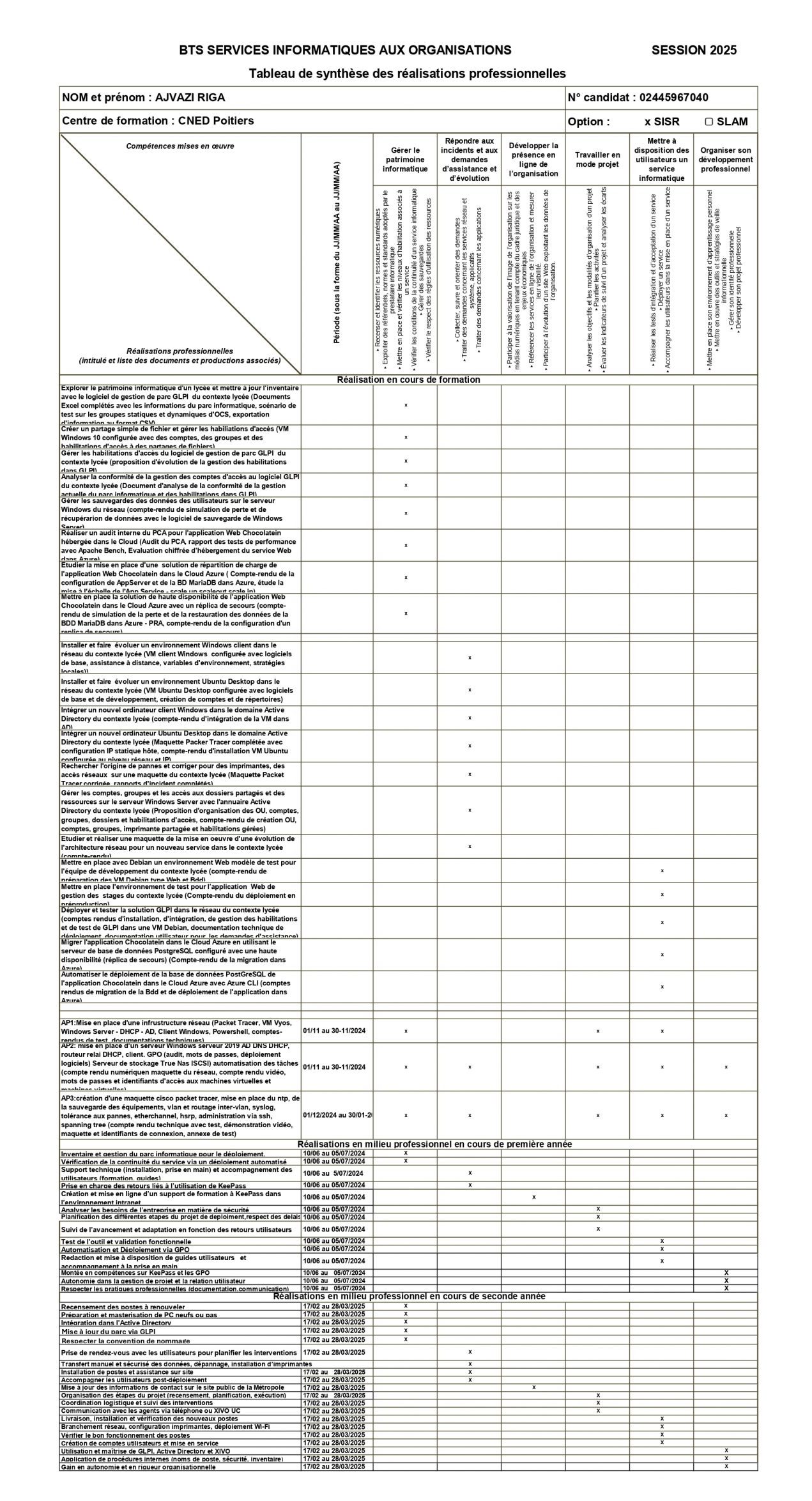Synthèse réalisations et compétences développées de première et deuxième année – Stage et enseignements BTS SIO